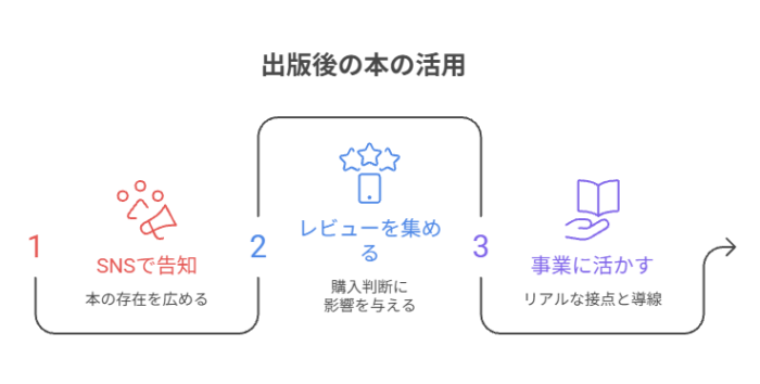 | 7 | 出版後の活用 | SNS告知・レビュー獲得・本を事業に活かす |