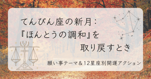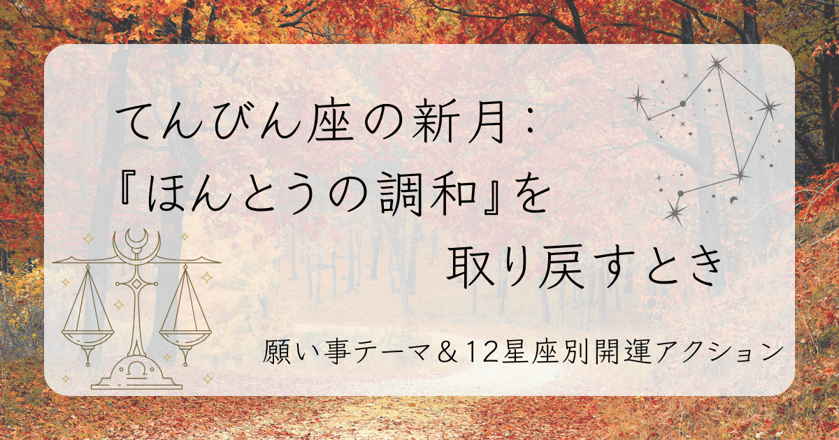 天秤座新月のテーマは、「ほんとうの調和を取り戻す」こと。つい見過ごしてきた”じぶんを後回しにする優しさ”に、そっと光を当てるタイミングです。