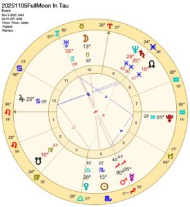 2025年11月5日(水)22:19、牡牛座で満月を迎えます。