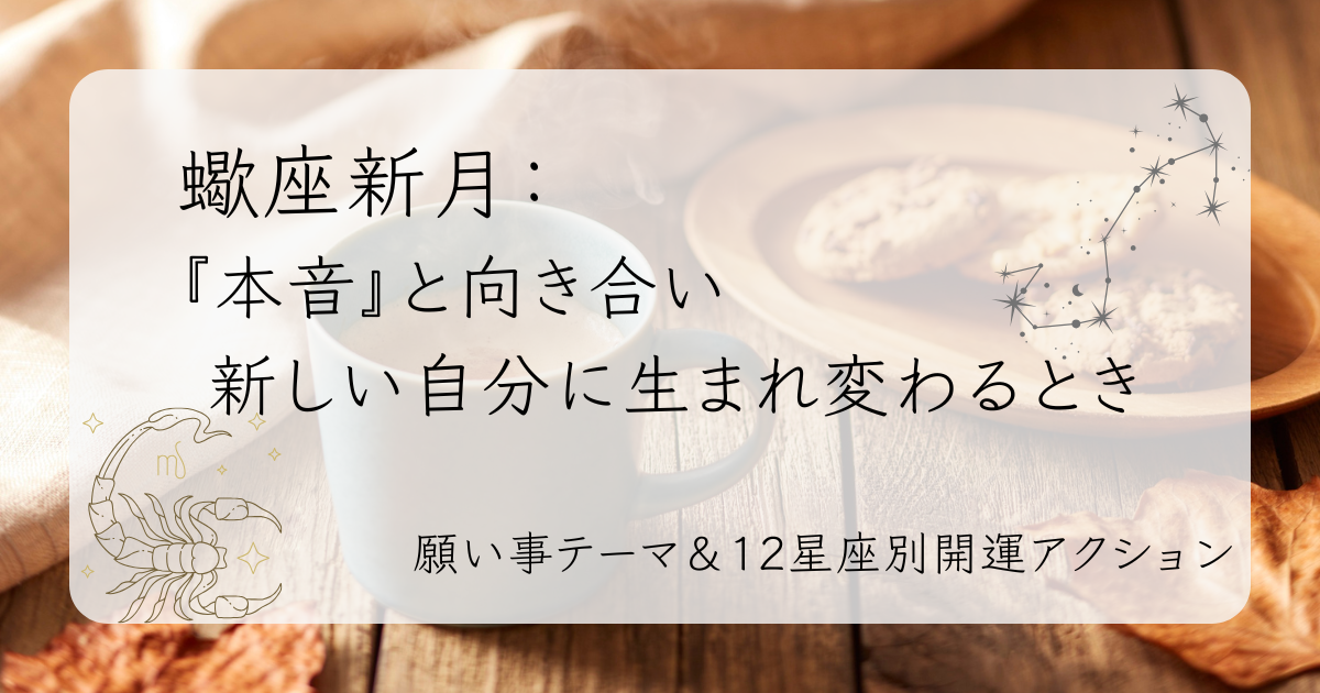 10月24日〜11月22日頃に迎える蠍座新月は、そんな “心の奥にしまい込んできた本音” がに静かに光が当たるタイミング。